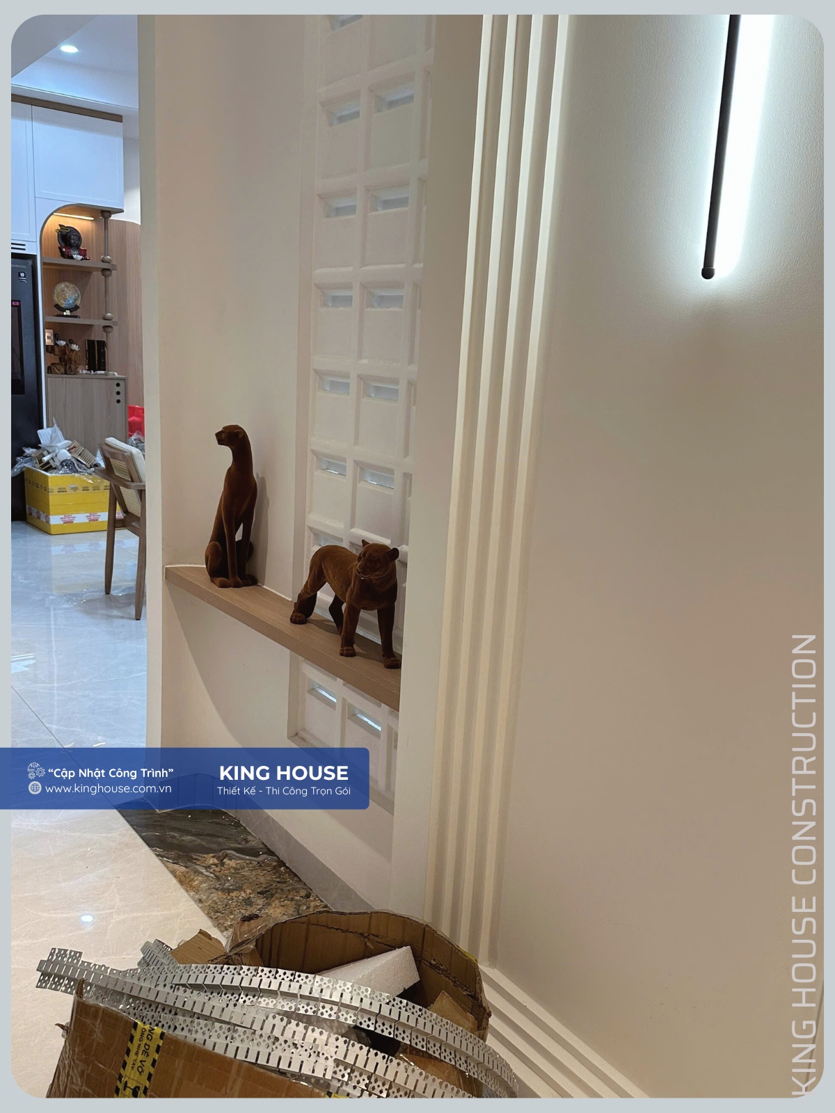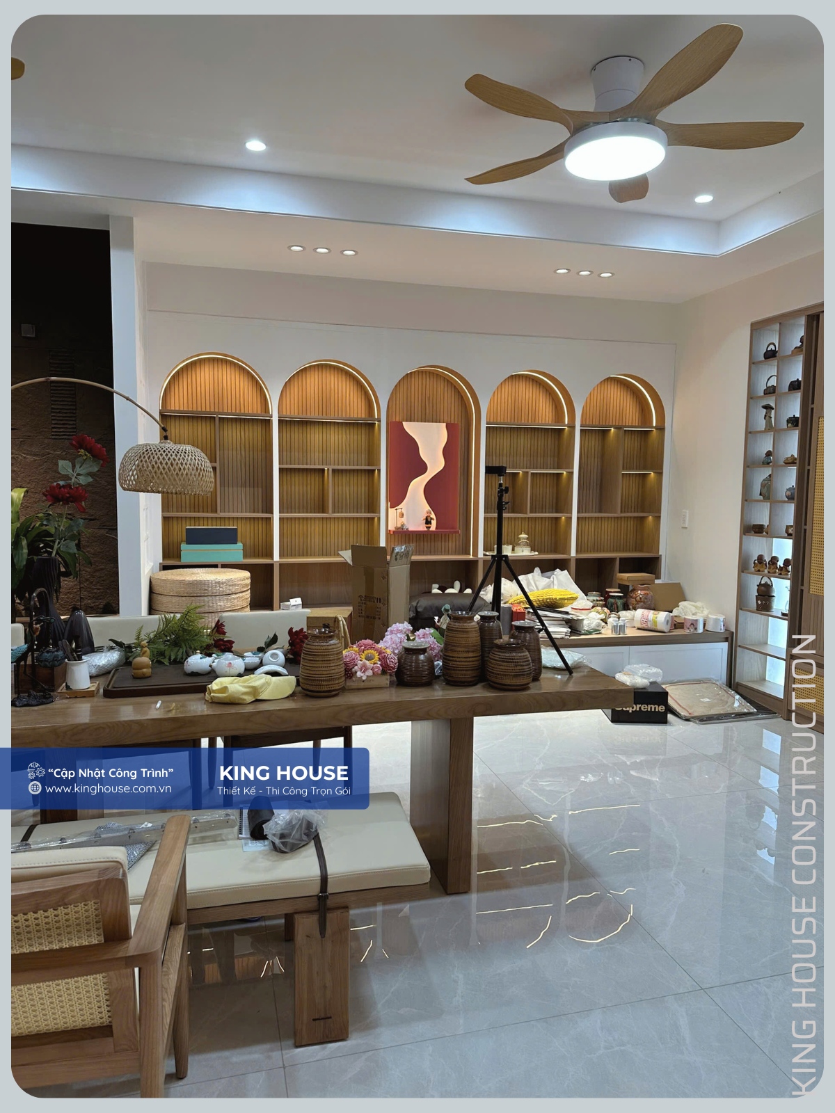 Không chạy theo hình thức, không làm vội cho kịp ngày, King House lựa chọn cách làm chắc chắn: rà soát từng công đoạn, tinh chỉnh từng chi tiết nhỏ để khi bàn giao, ngôi nhà đạt được sự hoàn chỉnh cả về thẩm mỹ lẫn công năng sử dụng.