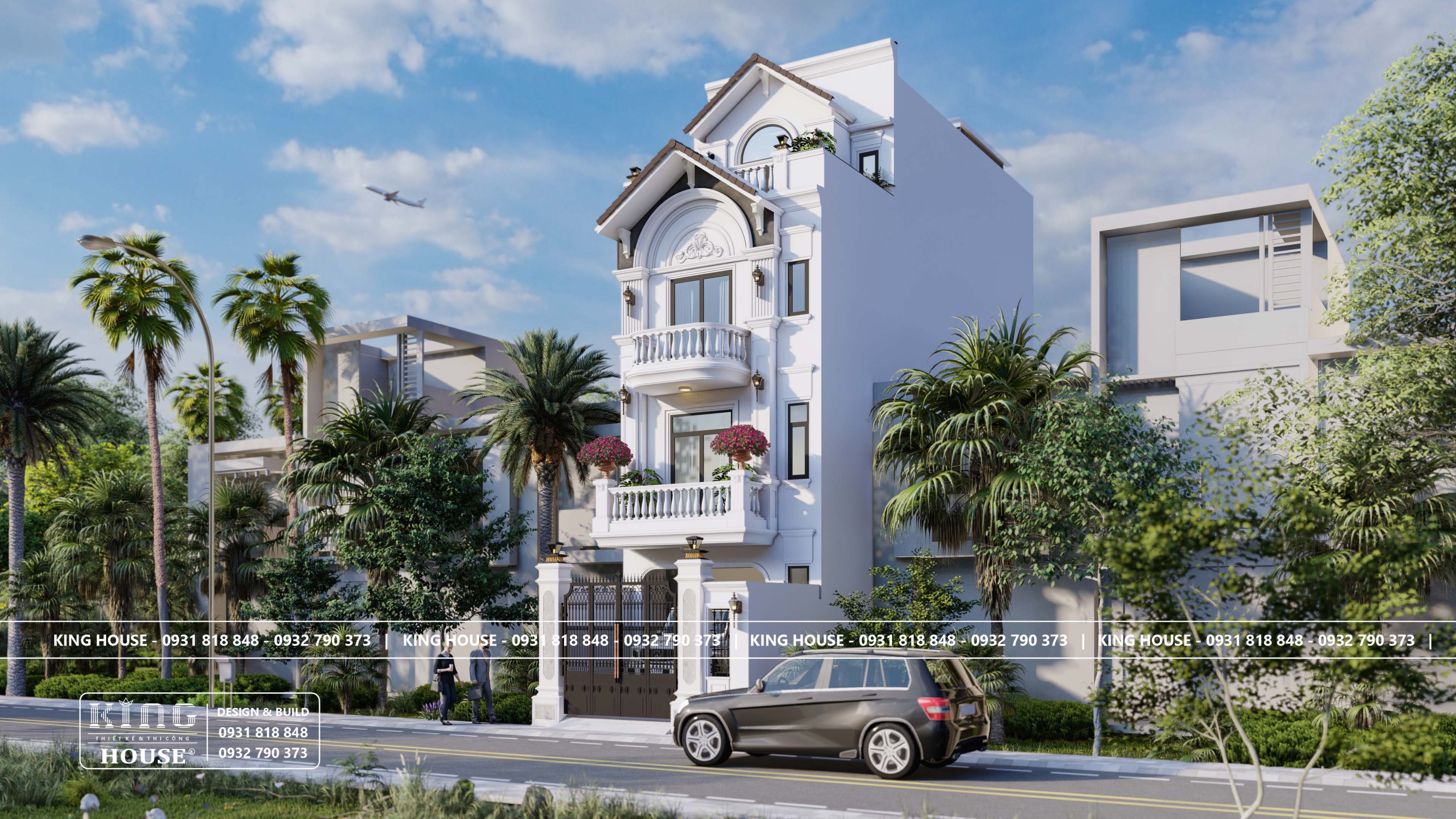 Mẫu nhà 3 tầng mái bằng dưới đây mang phong cách tân cổ điển, được KING HOUSE thiết kế thi công trọn gói. Điểm nhấn của ngôi nhà đến từ mặt tiền sang trọng với các chi tiết phào chỉ tinh tế, cột trụ vững chãi và hệ cửa vòm mềm mại.
