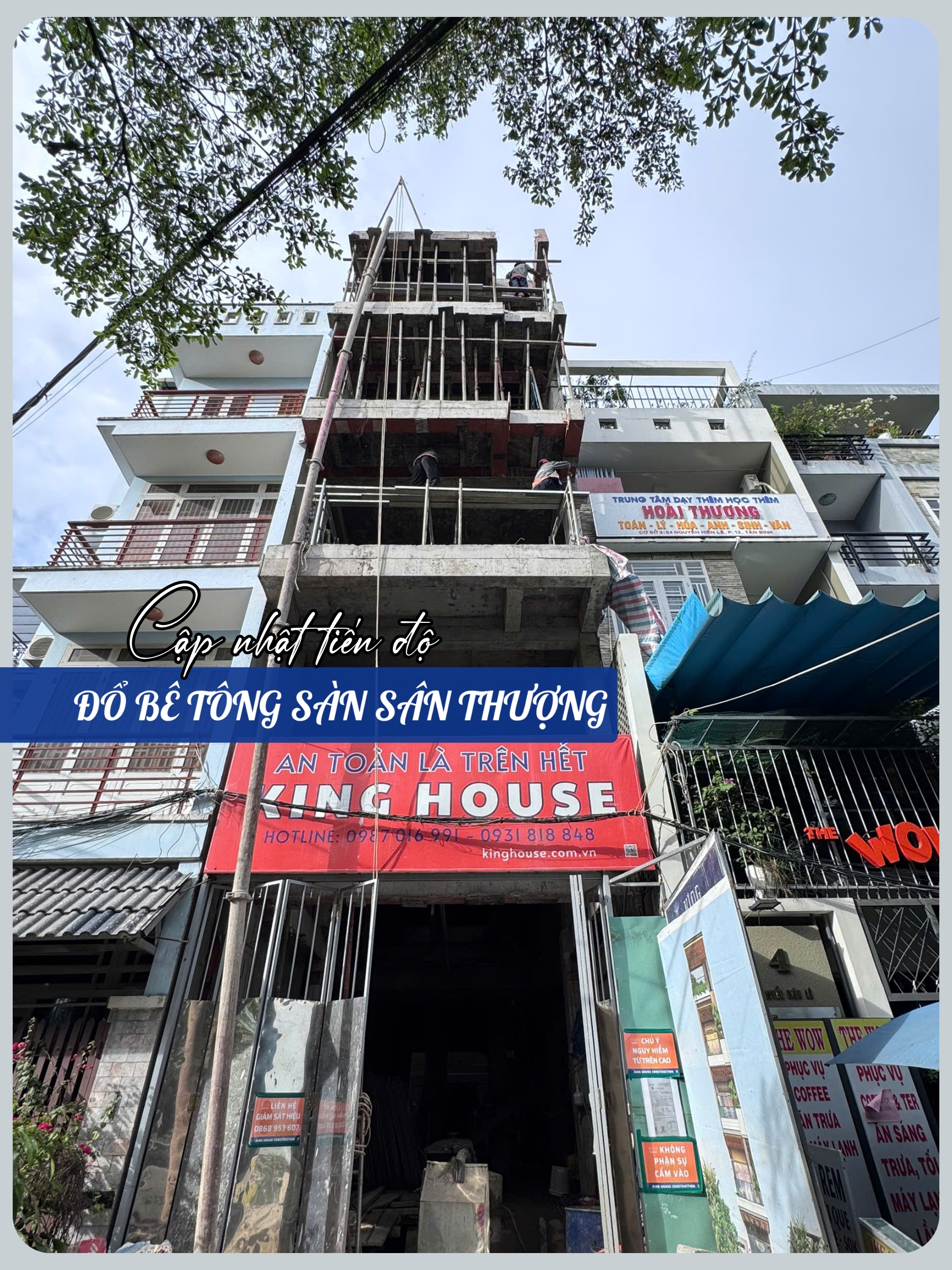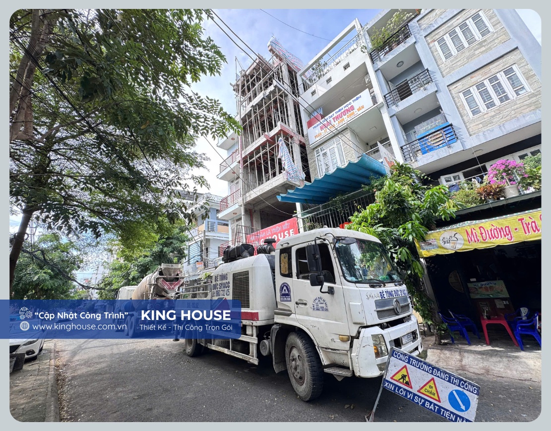 Tại công trình nhà phố Nguyễn Hiến Lê – Quận Tân Bình, đội ngũ King House vừa hoàn thành công tác đổ bê tông sàn sân thượng, đánh dấu giai đoạn quan trọng trong quá trình thi công phần thô. Mỗi sàn bê tông được hoàn thiện không chỉ là nền tảng cho kiến trúc bên trên, mà còn thể hiện sự chỉn chu, chuyên nghiệp và tận tâm trong từng công đoạn thi công.