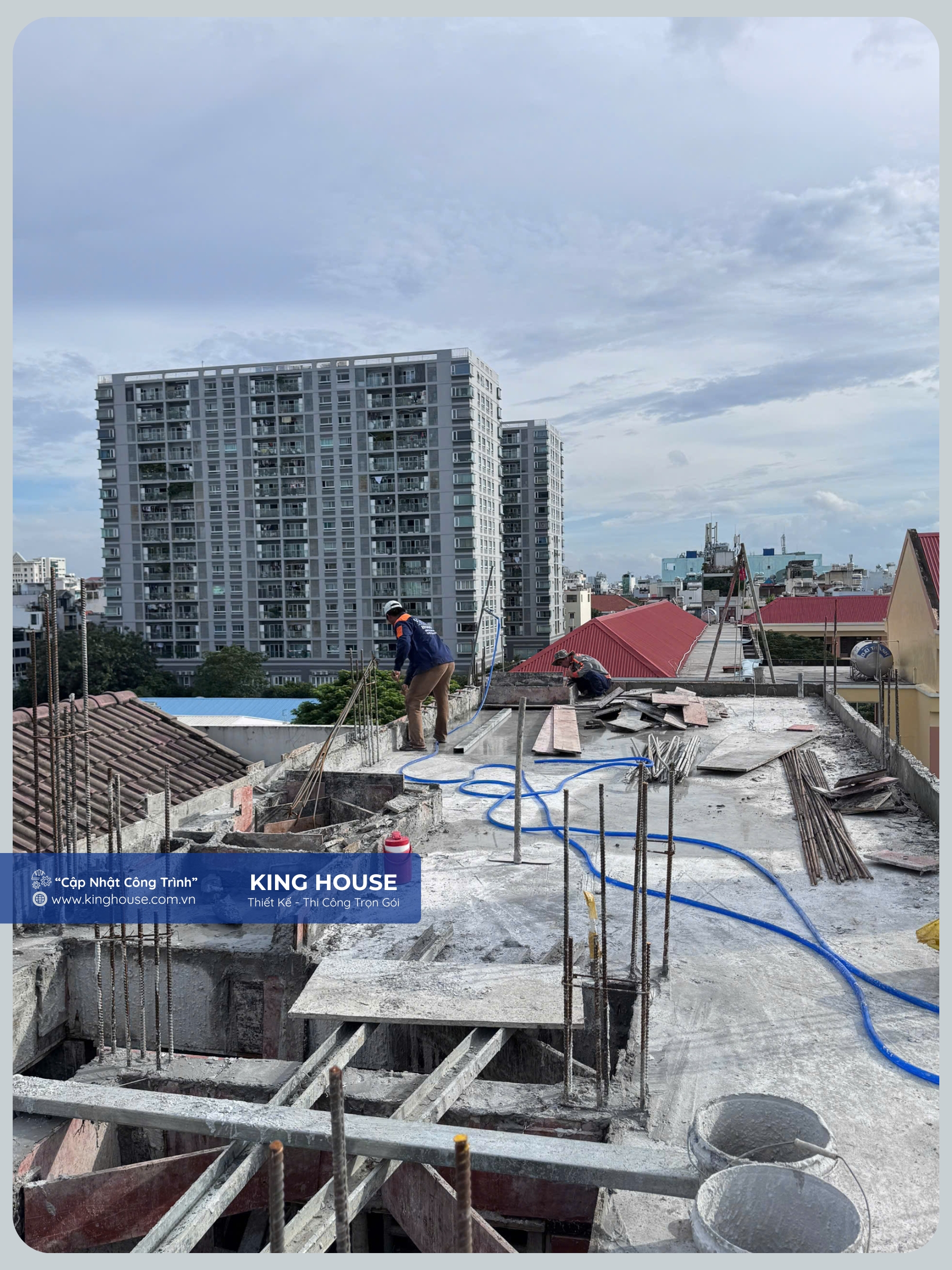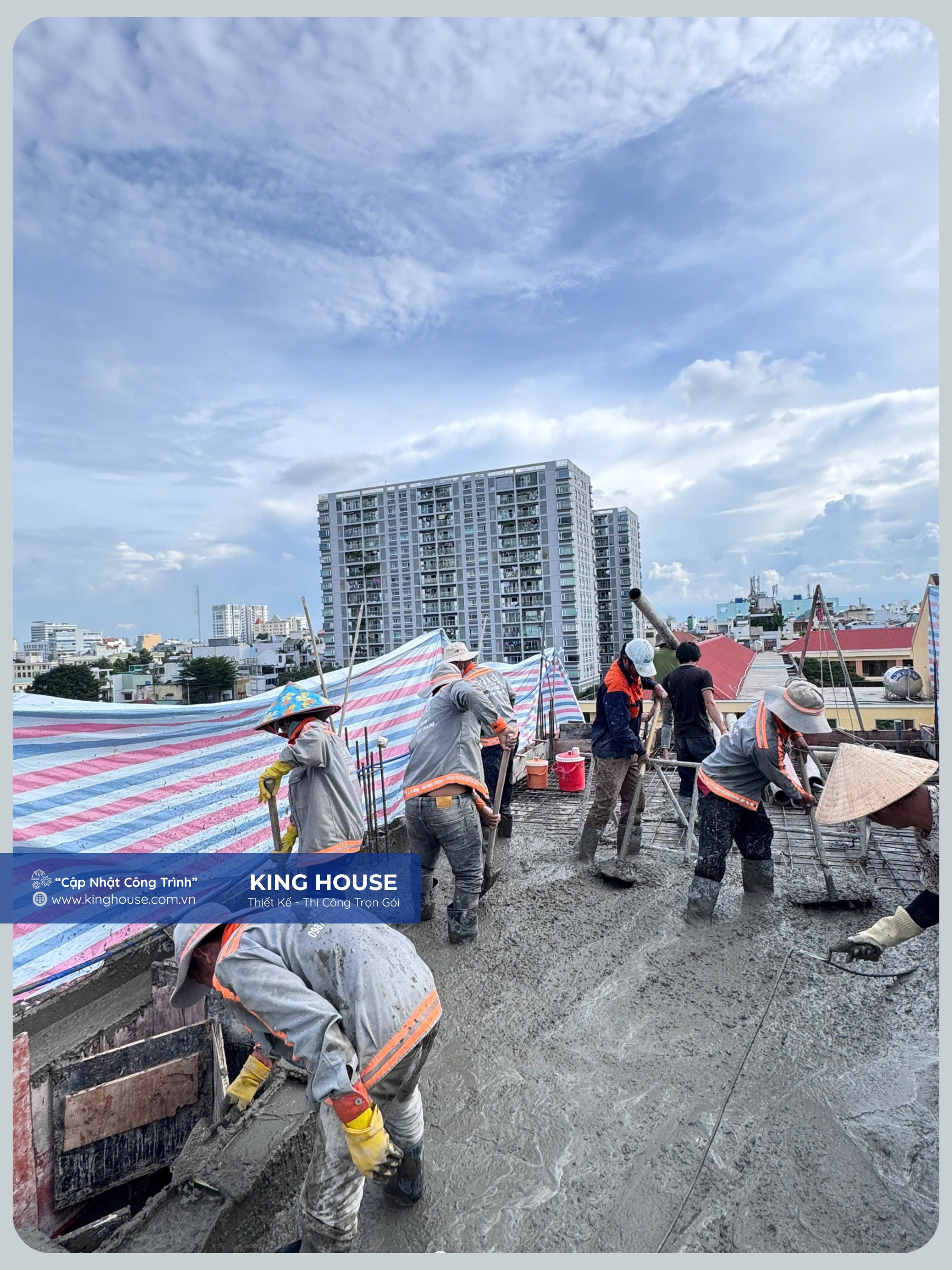 Công tác đổ bê tông được King House thực hiện đúng quy trình kỹ thuật và tiêu chuẩn xây dựng hiện hành.