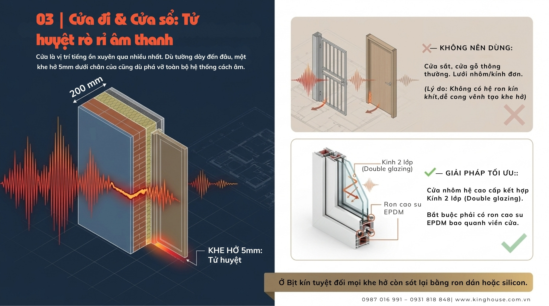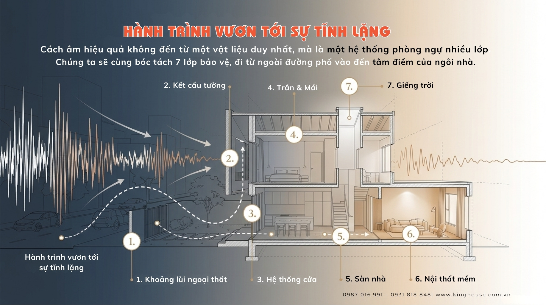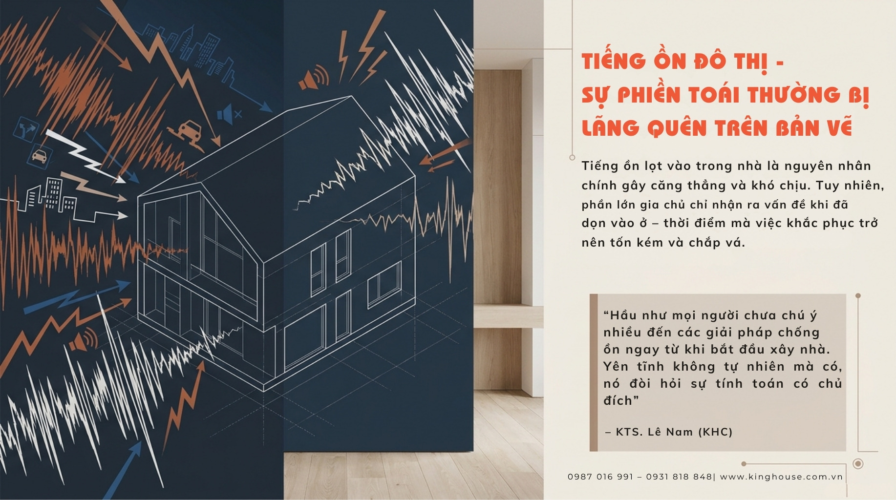 Theo chia sẻ từ KTS Lê Nam – King House, nếu xử lý đúng ngay từ đầu, bạn có thể giảm đến 60–80% tiếng ồn cho nhà phố.