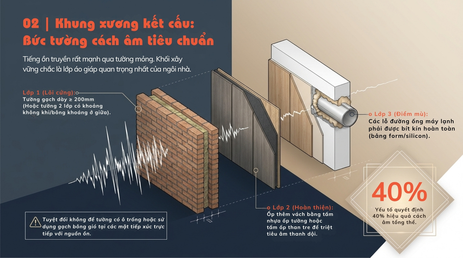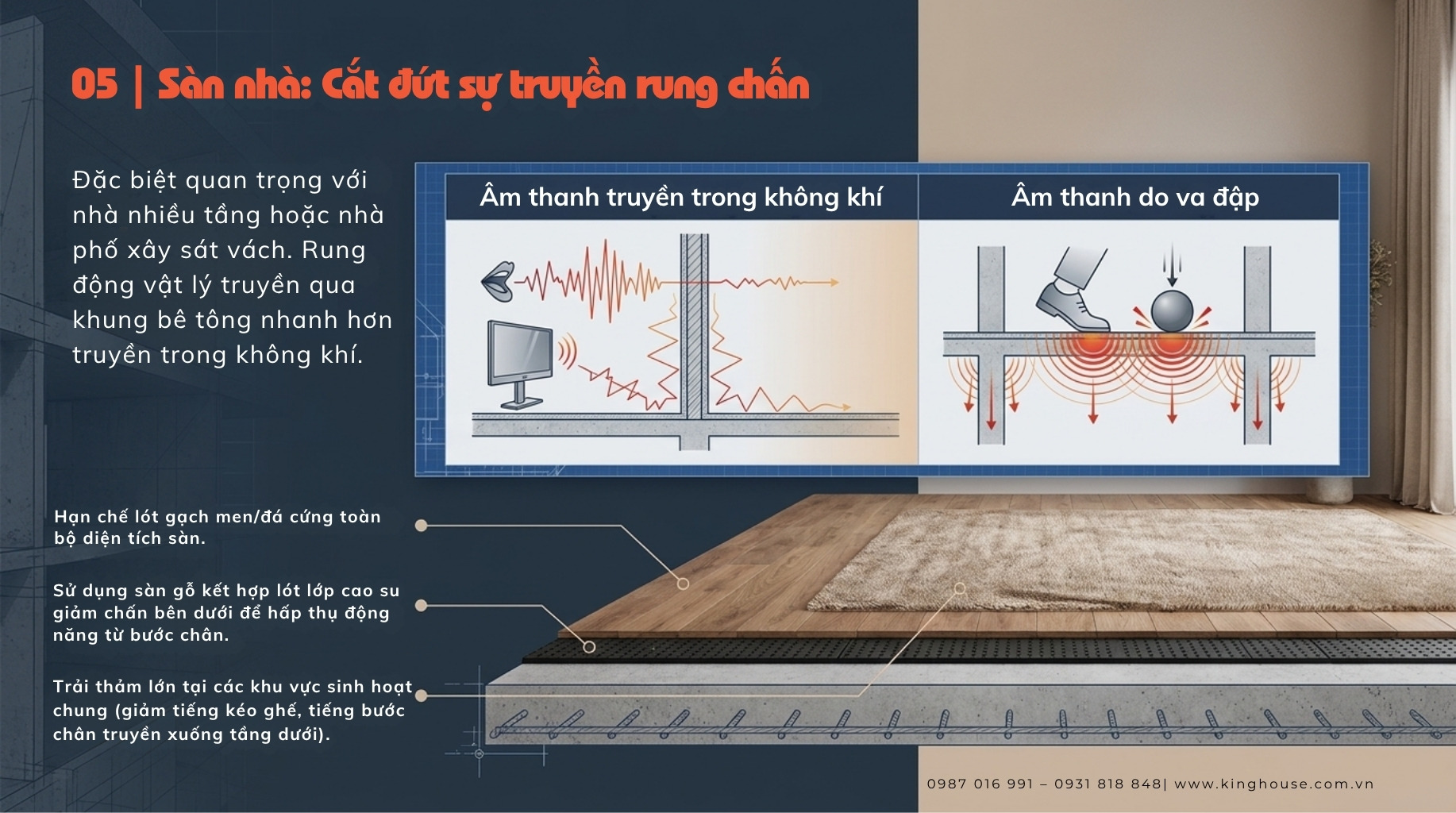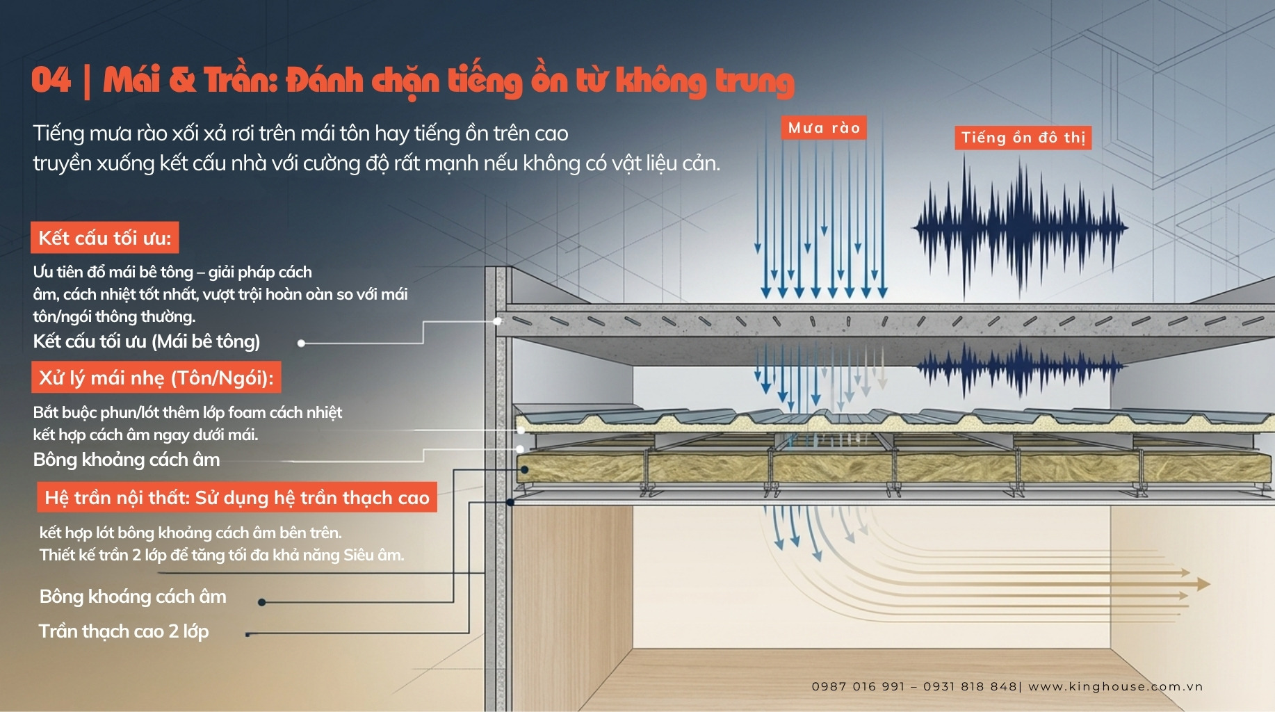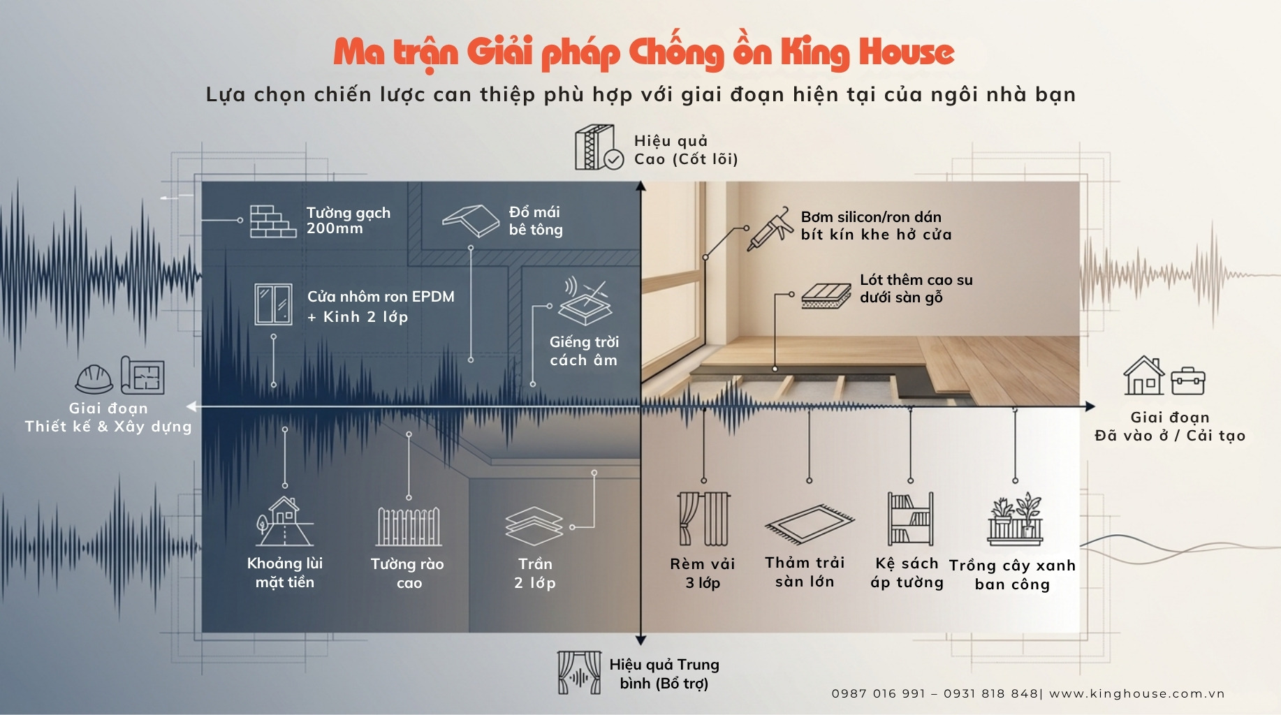 Theo chia sẻ từ KTS Lê Nam – King House, nếu xử lý đúng ngay từ đầu, bạn có thể giảm đến 60–80% tiếng ồn cho nhà phố.