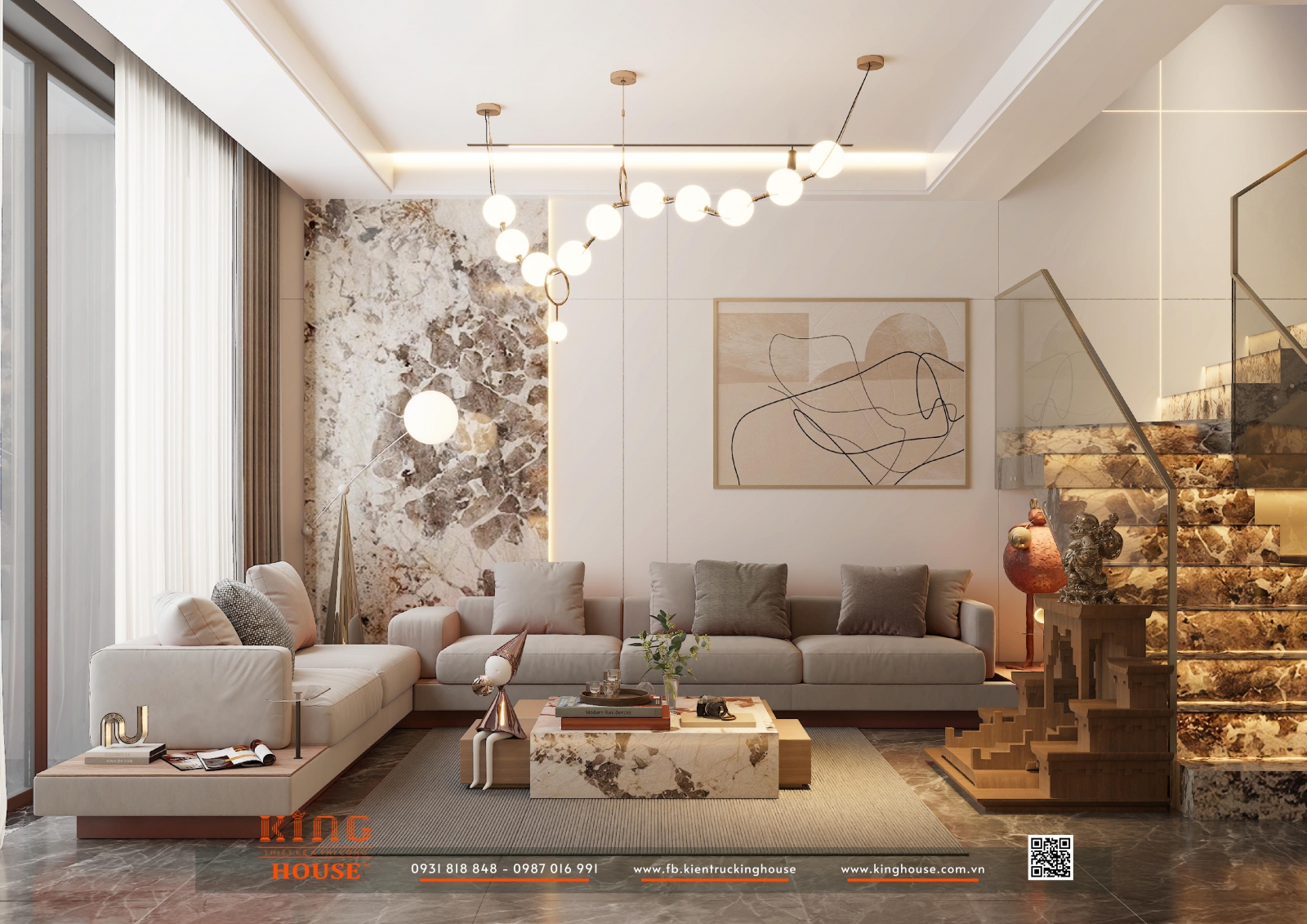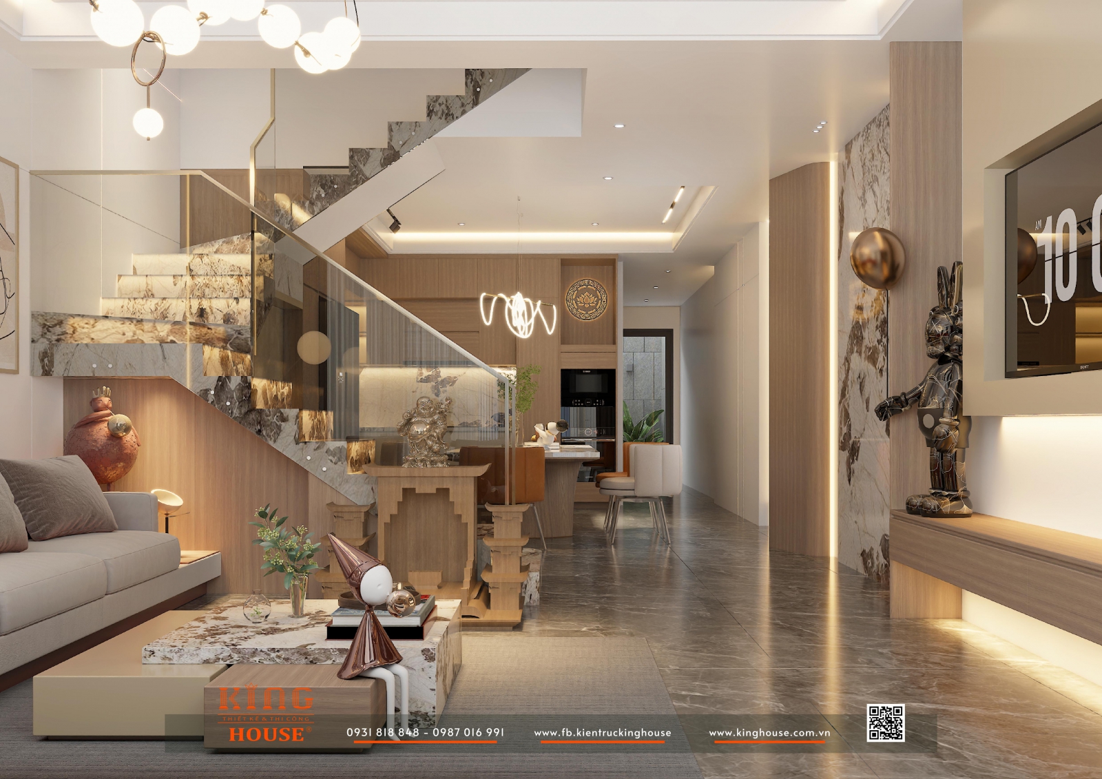 Vạn Hạnh House là một trong những dự án tiêu biểu do KHC thiết kế và thi công trọn gói, thể hiện rõ triết lý "Hiện đại – Sang trọng – Ấm áp – Cá nhân hóa" Không gian được kiến tạo từ đá marble vân tự nhiên cao cấp, hệ gỗ ấm áp kết hợp ánh sáng nghệ thuật, mang lại trải nghiệm sống đẳng cấp nhưng vẫn gần gũi và đầy cảm xúc.
