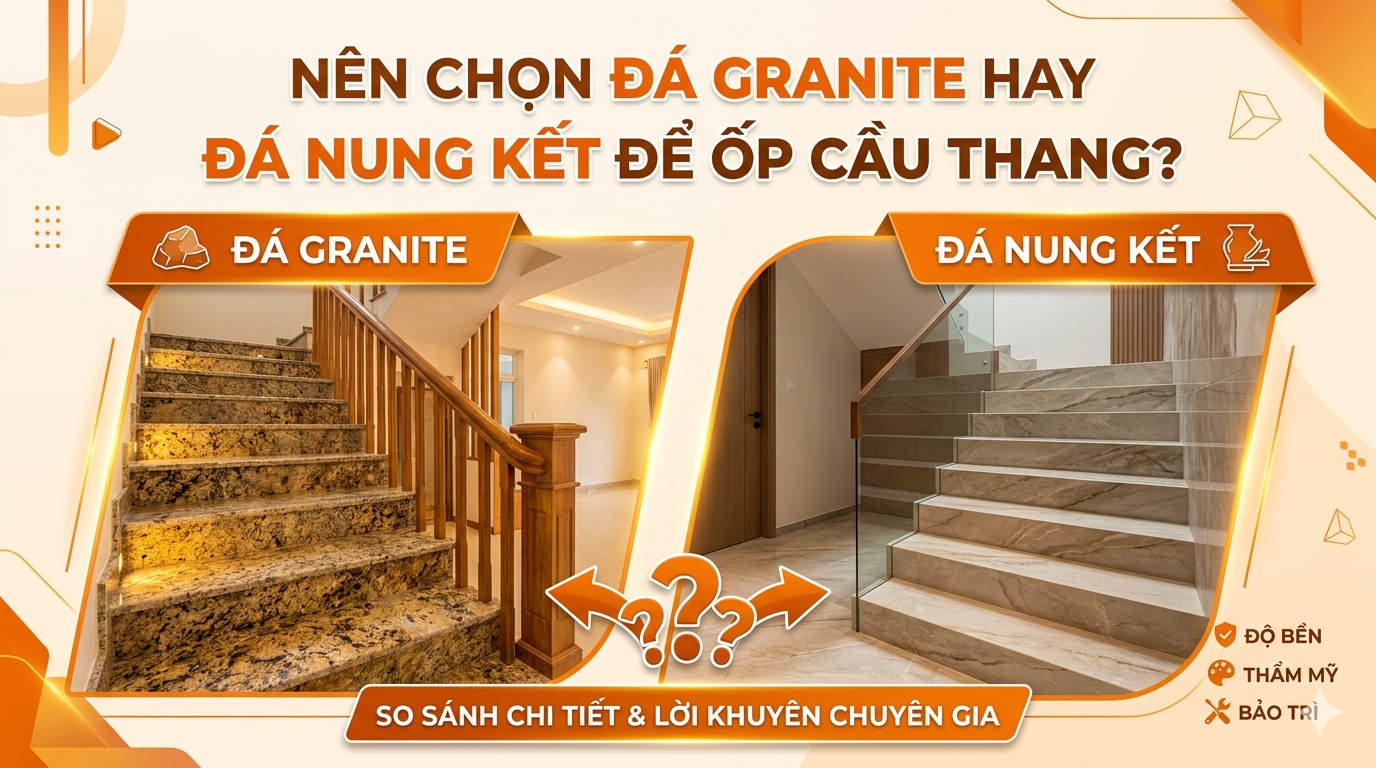 Đá Granite hay Đá Nung Kết? Đây là một trong những câu hỏi quan trọng và gây nhiều phân vân nhất mà đội ngũ kiến trúc sư KHC thường xuyên nhận được từ các gia chủ trong quá trình lựa chọn vật liệu hoàn thiện nhà ở. Cầu thang không chỉ là trục giao thông mà còn là điểm nhấn thể hiện sự sang trọng và độ bền của công trình. Việc chọn đá ốp cầu thang phải đáp ứng những tiêu chuẩn khắt khe về thẩm mỹ, độ bền và đặc biệt là sự an toàn.